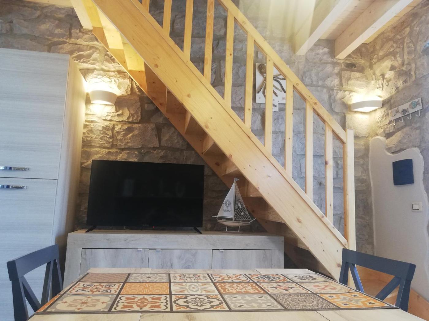 Questa casa vacanze con aria condizionata comprende 1 camera da letto e 1 bagno con bidet, doccia e asciugacapelli. La cucina ha frigorifero, forno e piano cottura, più macchina da caffè e bollitore elettrico.