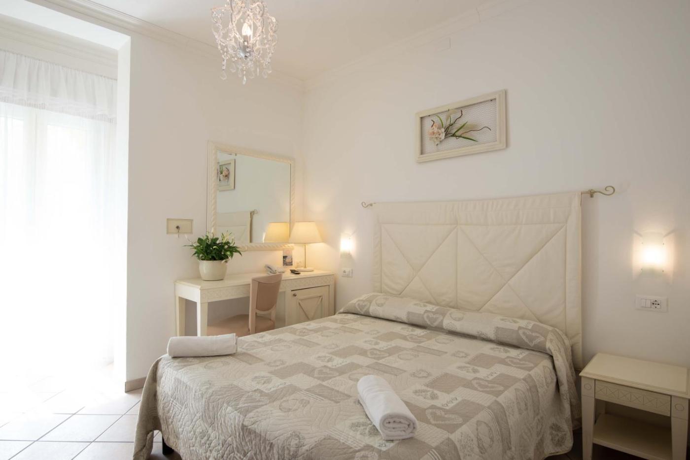 Camera Matrimoniale Piccola. Ampia camera matrimoniale dotata di aria condizionata, cassaforte, bagno privato con doccia e terrazza con vista mare. L’alloggio presenta 1 letto. ;