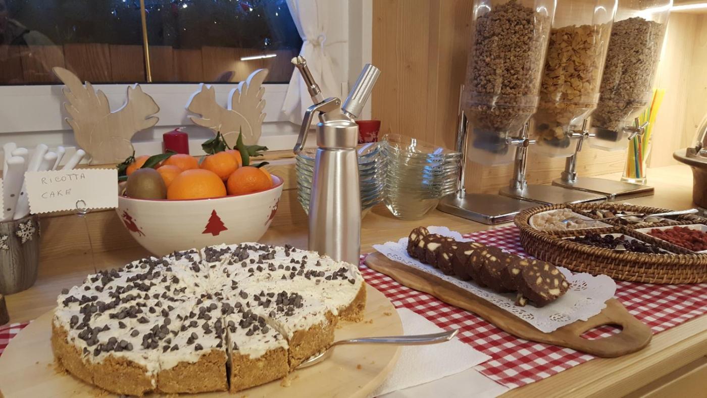 Durante il soggiorno potrete gustare una prima colazione con unampia scelta di torte fatte in casa e prodotti salati, come formaggi, salumi locali e uova.