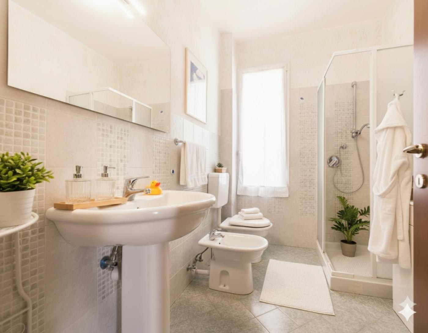 Appartamento con 2 Camere da Letto. This spacious apartment consists of 1 living room, 2 separate bedrooms and 1 bathroom with a shower and a bidet. Guests can make meals in the kitchenette that is equipped with a stovetop, a refrigerator, kitchenware and an oven. The air-conditioned apartment provides a flat-screen TV, a washing machine, a seating area, a dining area as well as sea views. The unit offers 4 beds.