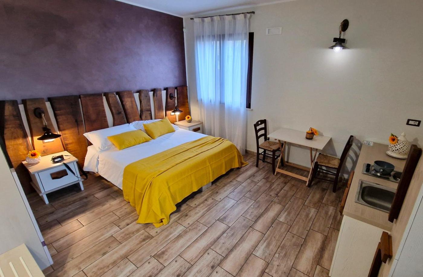Camera Deluxe. Providing free toiletries and bathrobes, this double room includes a private bathroom with a shower, a bidet and a hairdryer. The fully equipped kitchen features a stovetop, a refrigerator, kitchenware and an electric kettle. The spacious air-conditioned double room provides a flat-screen TV with cable channels, a private entrance, soundproof walls, a minibar as well as garden views. The unit offers 1 bed. ;