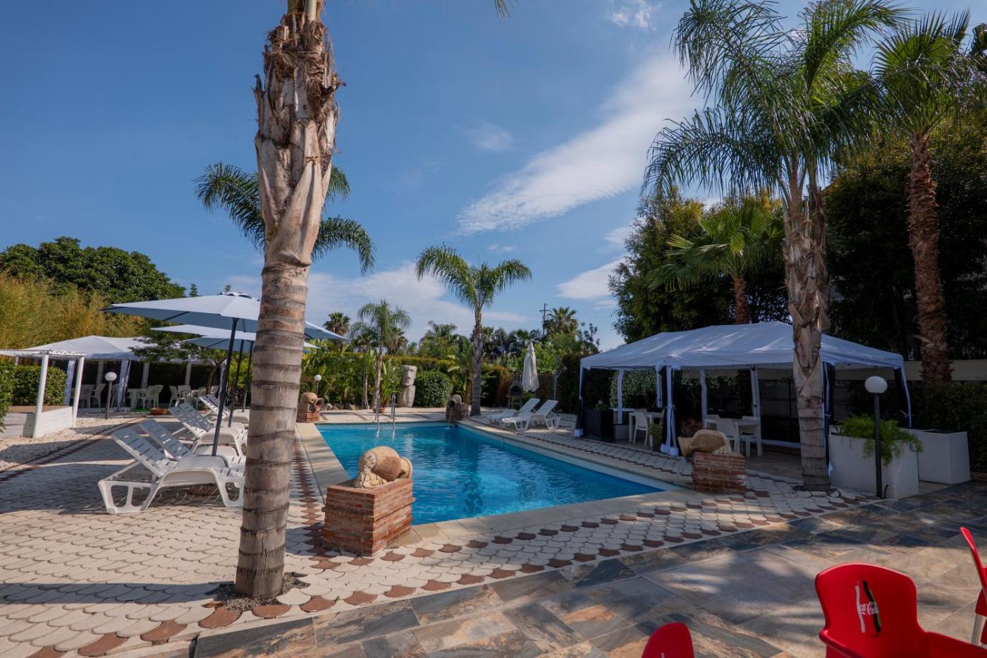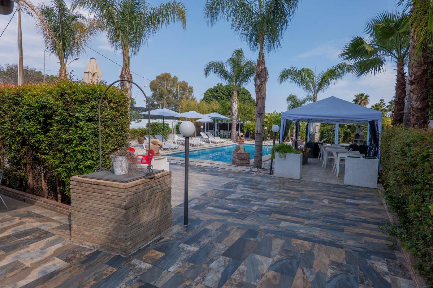Camera Quadrupla con Bagno Privato. The quadruple room offers air conditioning, a wardrobe, as well as a private bathroom featuring a shower and a bidet. The quadruple room features a safe deposit box, a sofa, heating, a flat-screen TV, as well as pool views.