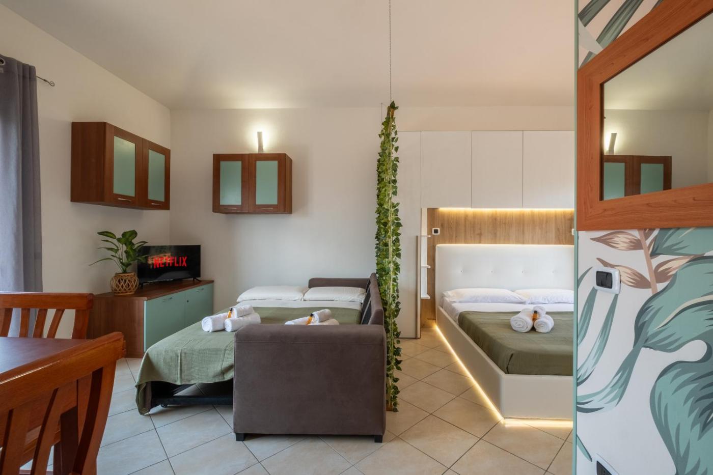 Questo appartamento con aria condizionata comprende 1 camera da letto, un soggiorno, una cucina con utensili, frigorifero e macchina da caffè, e 1 bagno con bidet e doccia. Presso questo appartamento troverete asciugamani e lenzuola tra i servizi disponibili.
