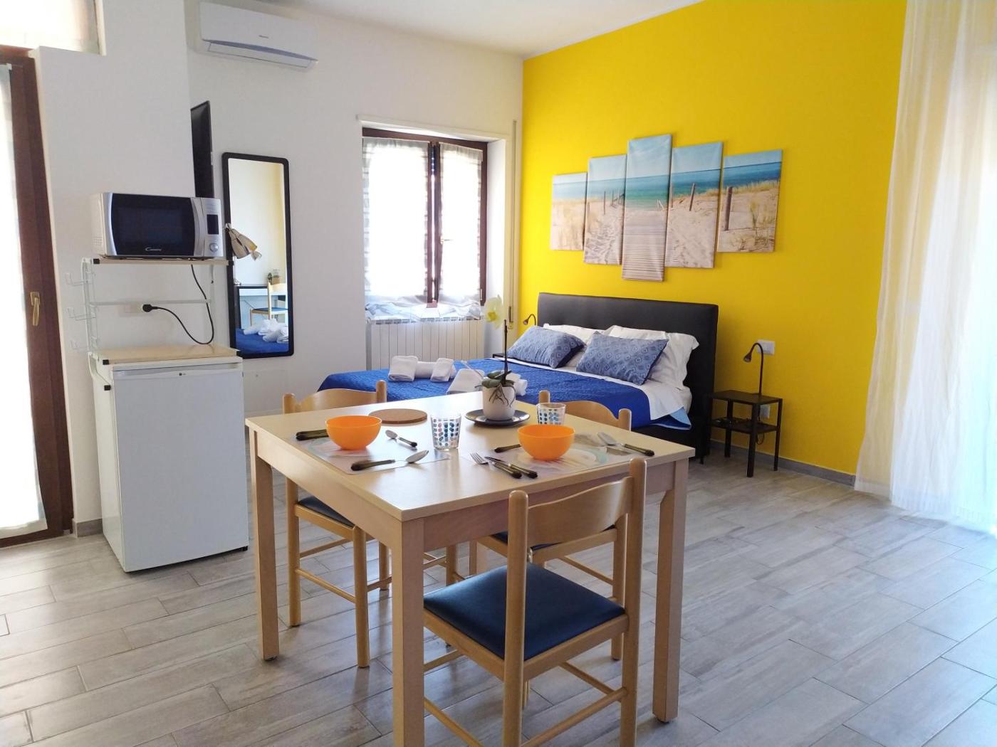 Questo appartamento con aria condizionata comprende 1 camera da letto, un soggiorno, un angolo cottura con utensili, frigorifero e bollitore elettrico, e 1 bagno con doccia edi cortesia. Presso questo appartamento troverete asciugamani e lenzuola tra i servizi disponibili.