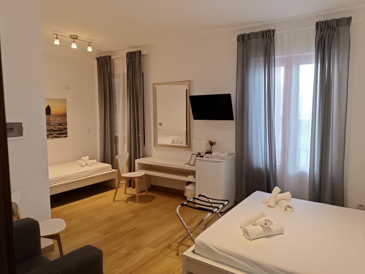 Camera Tripla Superior. This air-conditioned triple room is comprised of a flat-screen TV with streaming services, a private bathroom as well as a balcony. The unit has 3 beds.
