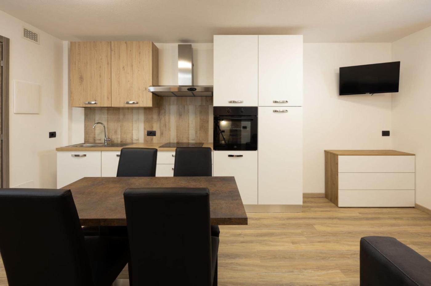 Appartamento con 1 Camera da Letto. This apartment includes 1 living room, 1 separate bedroom and 1 bathroom with a shower and a bidet. The fully equipped kitchen has a stovetop, a refrigerator, a dishwasher and kitchenware. The apartment offers a coffee machine, a dining area, a wardrobe, a flat-screen TV, as well as mountain views. The unit has 2 beds.