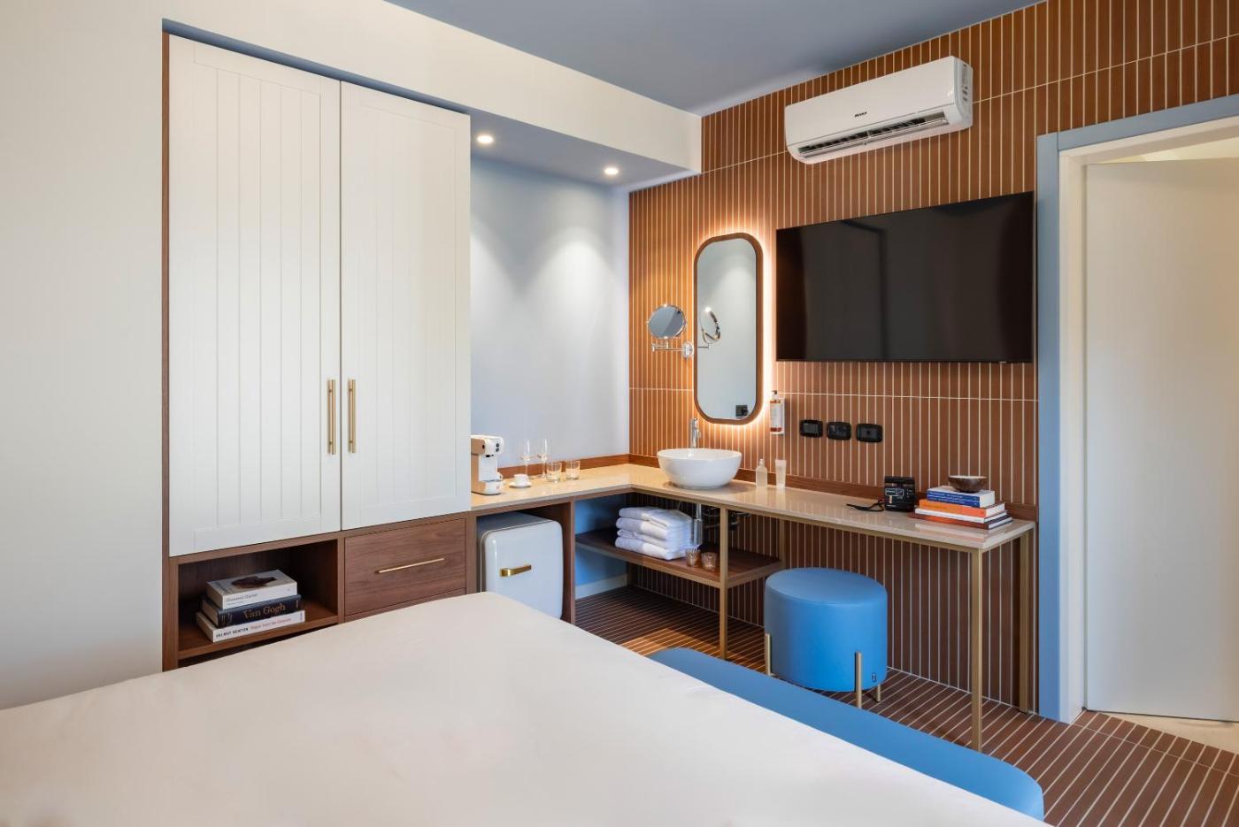 Suite King con Vasca Idromassaggio. This suites standout feature is the hot tub. This suite is comprised of 1 living room, 1 separate bedroom and 1 bathroom with a shower and free toiletries. The air-conditioned suite offers a flat-screen TV with satellite channels, soundproof walls, a coffee machine, a seating area as well as garden views. The unit offers 2 beds. ;