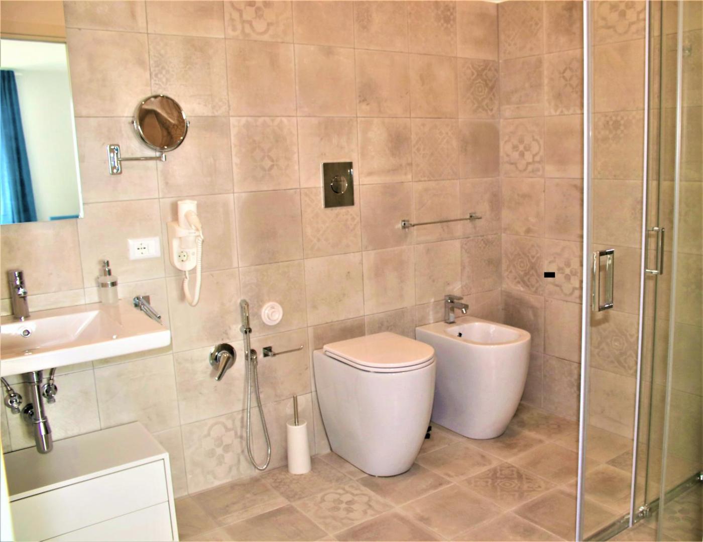 Suite. Climatizzata e dotata di ingresso indipendente, questa suite include un soggiorno, 1 camera da letto separata e 1 bagno con doccia e bidet. Suite insonorizzata con TV a schermo piatto e terrazza affacciata sul mare. L’alloggio presenta 2 letti. ;
