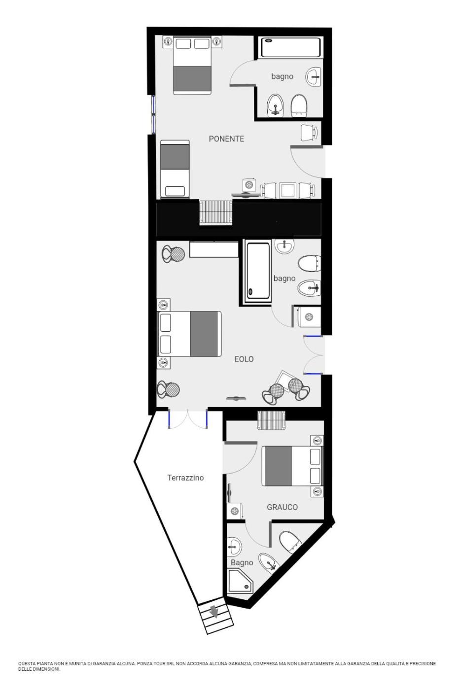 Camera Tripla. Camera tripla dotata di bagno privato con doccia, bidet, asciugacapelli edi cortesia. È climatizzata e offre una TV a schermo piatto, un ingresso privato e un pavimento piastrellato. L’alloggio presenta 2 letti. ;