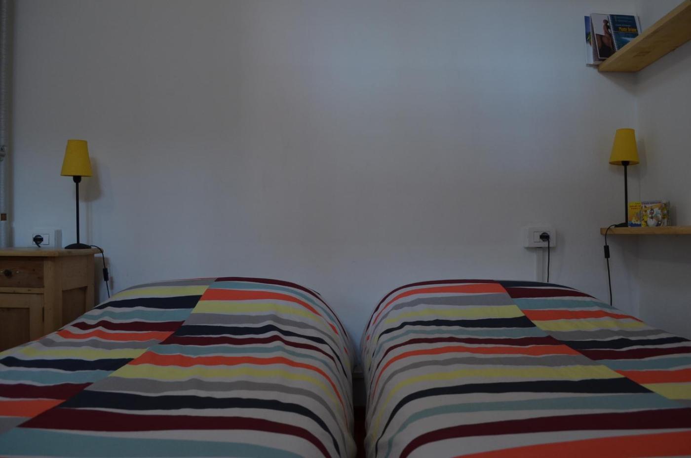 Camera MatrimonialeDoppia con Letti Singoli con Bagno in Comune. Camera luminosa con arredi semplici e pavimenti in parquet. Il bagno in comune si trova sullo stesso piano. ;