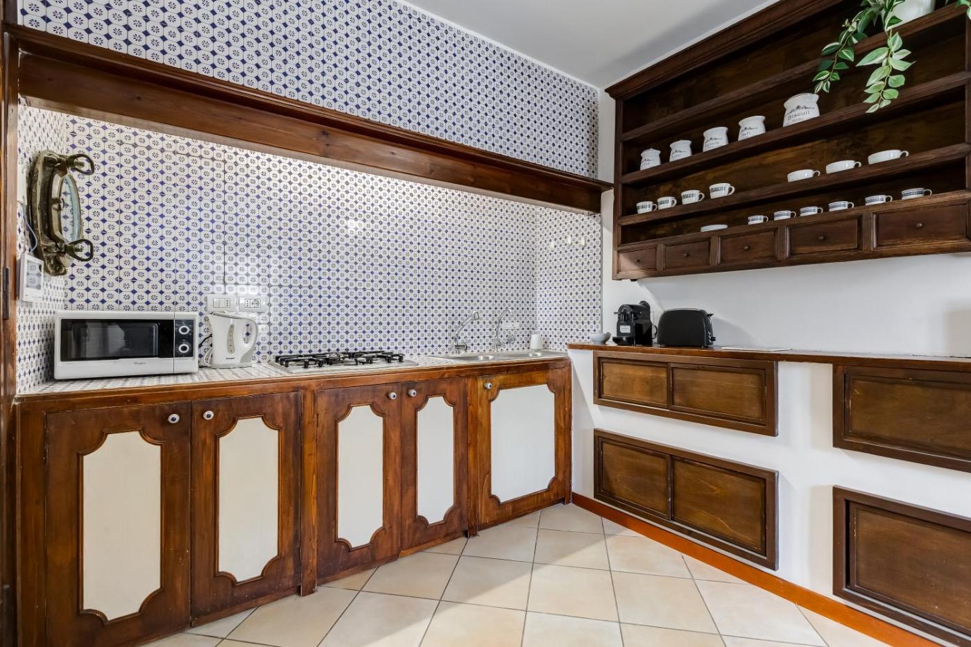 Appartamento con 1 Camera da Letto. This apartment features a fireplace. Boasting a private entrance, this air-conditioned apartment features 1 living room, 1 separate bedroom and 1 bathroom with a bath and a shower. Guests can make meals in the kitchen that has a stovetop, a refrigerator, a dishwasher and kitchenware. The spacious apartment features a washing machine, soundproof walls, a tea and coffee maker as well as a terrace with garden views. The unit has 3 beds.